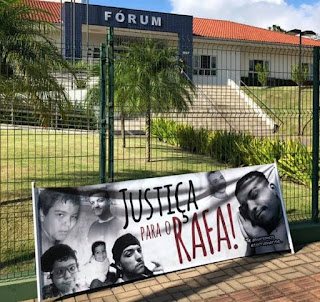 | Faixa pedindo justiça pela morte de Rafael foi levantada em frente ao Fórum de Ascurra. Foto: Jhonnathan Macedo/O Município |