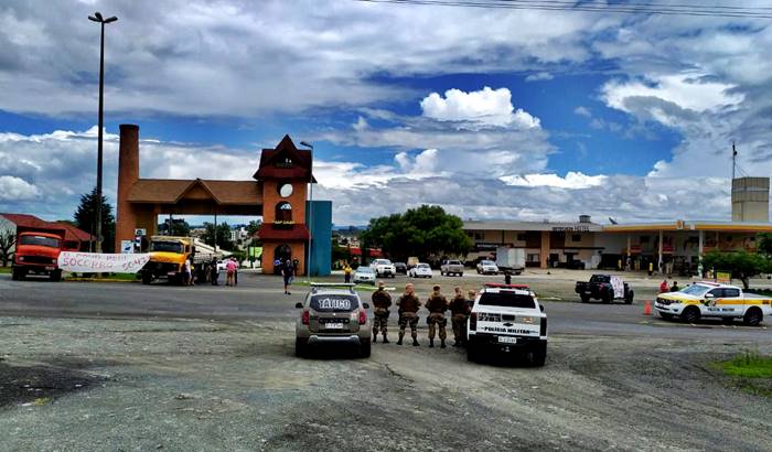 Policiais militares de 3º BPM de Canoinhas prestaram apoio à Polícia Rodoviária Estadual durante a manifestação, que teve duração de aproximadamente uma hora e transcorreu de forma pacífica.