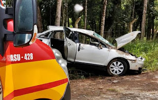 Também como carona no banco traseiro, uma mulher de 27 anos apresentava escoriações nos braços, na região dorsal esquerda, com fortes dores na região da coluna cervical, coluna toráxica, e coluna lombar.
