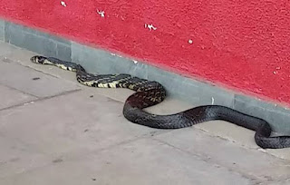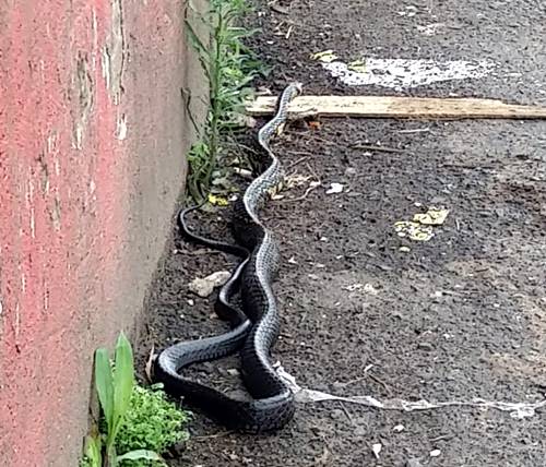 No local a guarnição encontrou um veículo Montana, placas de Mallet (PR), que estava estacionado na Avenida Santa Rosa, e uma cobra encontrava-se na parte interna do motor do automóvel.