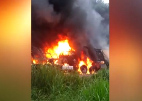 O acidente envolveu duas carretas, uma conduzida pelo jovem Henrique Matheus, e outra por seu pai. A colisão foi traseira.