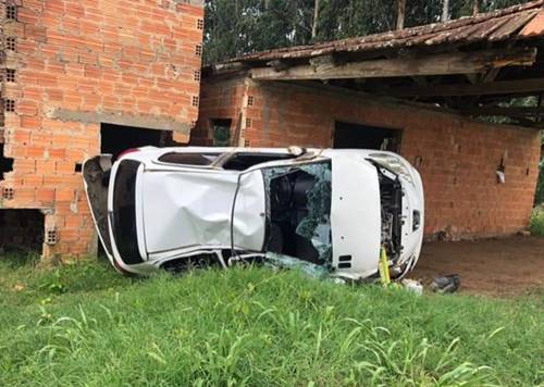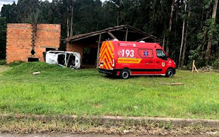 Um veículo Peugeot, com placas de Canoinhas, saiu da pista e capotou na tarde de sexta-feira (12), na marginal da rodovia BR-116 , em Itaiópolis, próximo a Seara Alimentos.