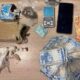 Em abordagem e busca pessoal, foi encontrado, em sua mochila, um revólver cromado calibre .38, Marca P. Wesley & Son, contendo cinco munições intactas, R$ 2.071 (dois mil e setenta e um reais) em espécie e um telefone celular, além de pertences e documentos pessoais.