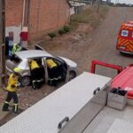 Os socorristas a encontraram já fora do veículo, consciente, apresentando um hematoma na região do tórx e referindo dor na clavícula.