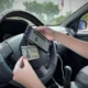 A motorista foi encontrada pelos bombeiros dentro do veículo, que estava suspenso no barranco, presa pelo cinto de segurança.