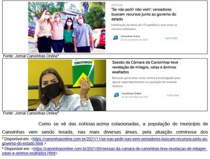 “Como se vê, a indignação dos cidadãos canoinhenses é plenamente compreensível, tendo em vista o elevado padrão de vida adotado nos últimos anos pelo prefeito e pelo vice-prefeito, Gilberto dos Passos e Renato Pike, com o uso de recursos públicos que poderiam, e deveriam, ser empregados em favor da população”.