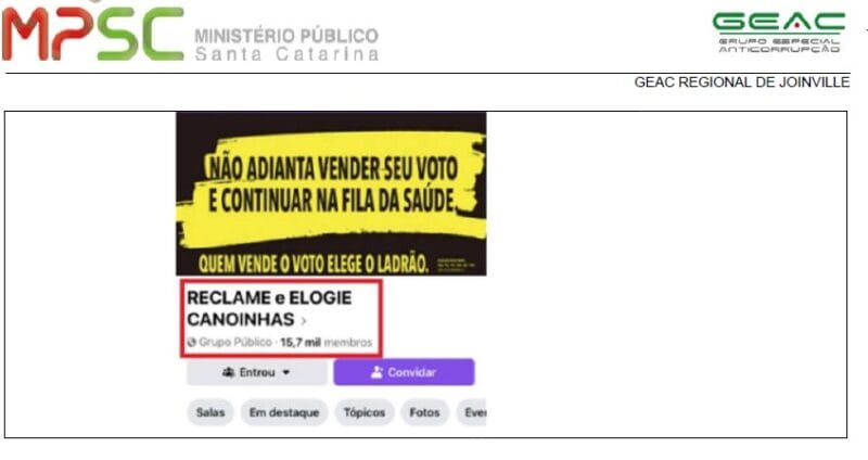 Um grupo na rede social Facebook, denominado Reclame e Elogie Canoinhas, foi citado em um trecho do documento do Ministério Público de Santa Catarina que embasou as prisões do ex-prefeito, Beto Passos e do vice Renato Pike, no último dia 29 de março.