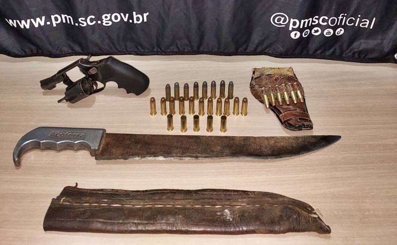 Diante da insistência, sem êxito, os policiais se aproximaram, momento que foi possível avistar que o referido estava com um revólver em punho. Em um momento de distração do homem, foi possível tirar a arma de sua mão, um revólver revólver, Calibre .38, com cinco munições intactas, enquanto os demais policiais o imobilizavam.