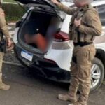 Com a ajuda da locadora, o carro foi localizado abandonado em uma estrada rural próximo ao distrito de Nova Brasília. Os suspeitos não foram encontrados.