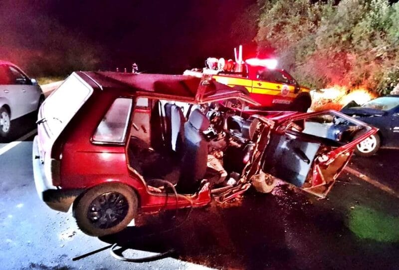 No segundo veículo envolvido, um Chevrolet Corsa Hatch, cor preta, placa Mercosul, haviam duas vítimas.
