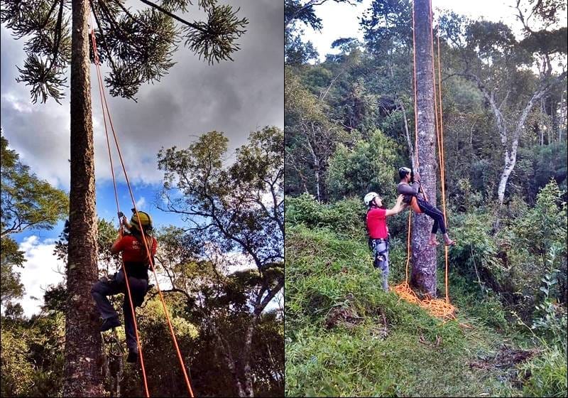 Para o local foi deslocado uma guarnição de resgate, onde constatou-se que se tratava de um jovem, preso na copa de um pinheiro (Araucária), com cerca de 14 metros de altura.