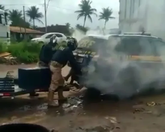 Imagens veiculadas na internet mostram a ação policial que deixou a vítima presa em uma viatura esfumaçada. O homem se debate com as pernas para fora enquanto um policial rodoviário mantém a tampa do porta-malas abaixada, impedindo o homem de sair ou respirar.