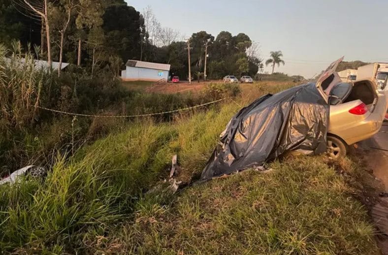 Um veículo Fiat Uno e um Toyota Corolla se envolveram em um gravíssimo acidente na tarde deste domingo (25), na BR-277 na localidade de Queimadas, em Palmeira, no Sul do Paraná.