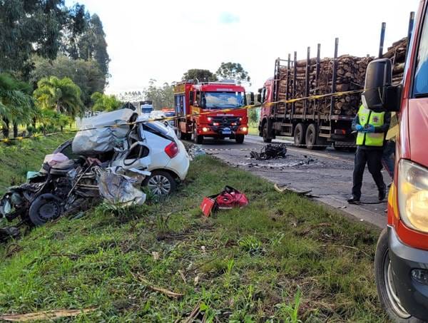 Na rodovia foi constatado que houve uma colisão frontal entre um VW Gol e um caminhão MB Atego 2430. A colisão foi tão violenta que chegou a arrancar o motor do carro de passeio.