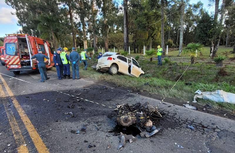 O condutor do Gol estava encarcerado nas ferragens, com ausência total de sinais vitais. A guarnição preservou o local e controlou o trânsito até a chegada da Polícia Rodoviária Estadual e da Polícia Cientifica.