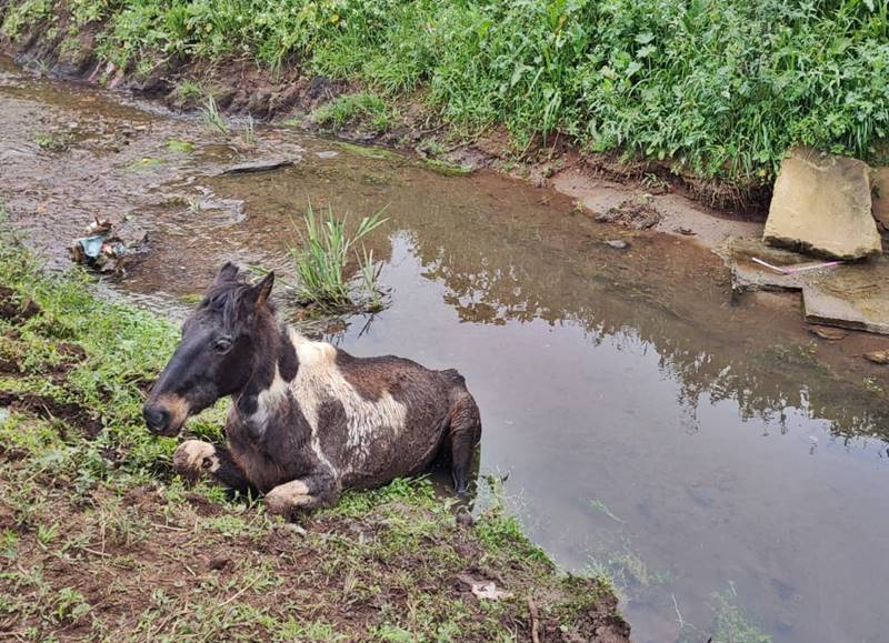 Por volta das 15h20 deste domingo (23), a guarnição do Corpo de Bombeiros de Irineópolis foi acionada para averiguação de um cavalo caído em uma vala, na Rua Goiás. No local foi constatado o animal em um córrego, com as patas atoladas na lama.