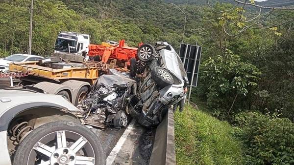O acidente aconteceu na pista sentido Joinville (SC), na altura do km 666. De acordo com testemunhas, uma carreta desceu sem controle, atingindo vários veículos pelo caminho.