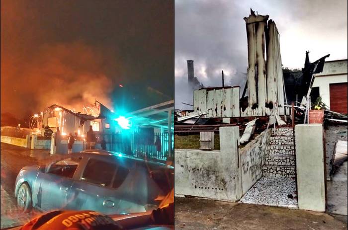 Por volta das 03h30 da madrugada desta quarta-feira (5), um incêndio destruiu totalmente uma residência na Rua Bruno Uhlmann, em Mafra. No local morava um idoso de 100 anos, e seu cuidador, de 55. Eles conseguiram sair antes que o fogo tomasse conta do imóvel.