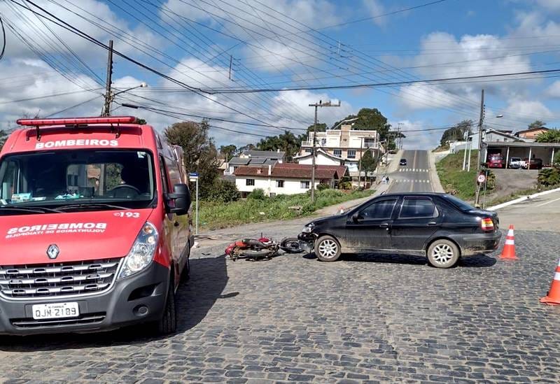 Já por volta das 15h15, houve outro chamado, esse próximo a prefeitura municipal. No mesmo, envolveram-se um Fiat Uno placas de Itaiópolis, e uma motocicleta Honda com placa Mercosul. O motociclista, um rapaz de 22 anos, sofreu ferimentos leves.