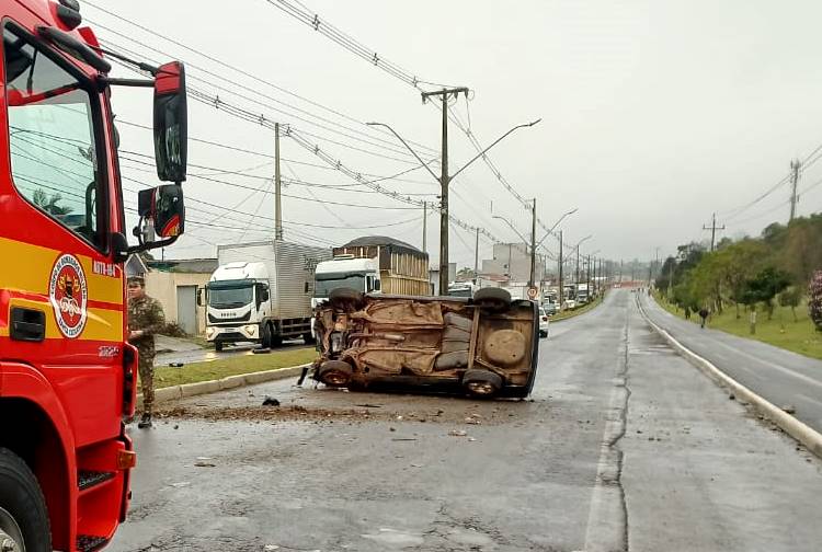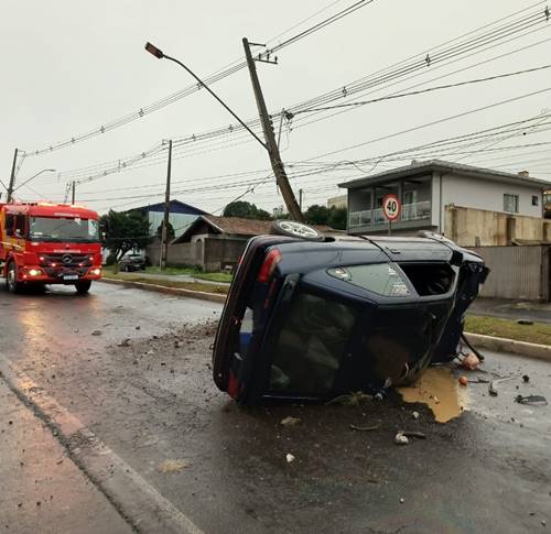 Segundo os socorristas, o motorista bateu em um poste e em seguida o carro capotou, sendo encontrado lateralizado na via pública.