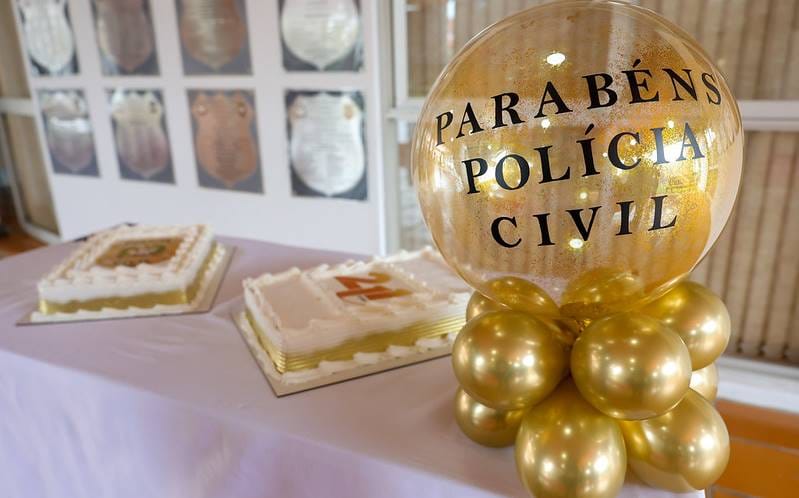 No fim da cerimônia foi cantado o parabéns para a Polícia Civil com direito a bolo cortado pelo governador Jorginho Mello e pelo delegado-geral Ulisses Gabriel.