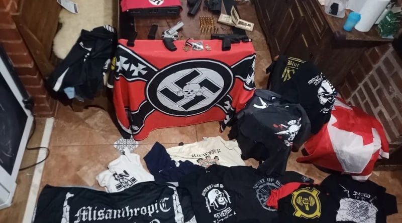 A operação desta terça-feira faz parte de uma investigação iniciada há oito meses, cujo inquérito policial permitiu identificar associados e células conexas àquele grupo, espalhados por diferentes Estados. Na ação, além da apreensão de vasto material de cunho nazista e extremista, foram apreendidas quatro armas de fogo e munições. Foram apreendidos aparelhos celulares e computadores.