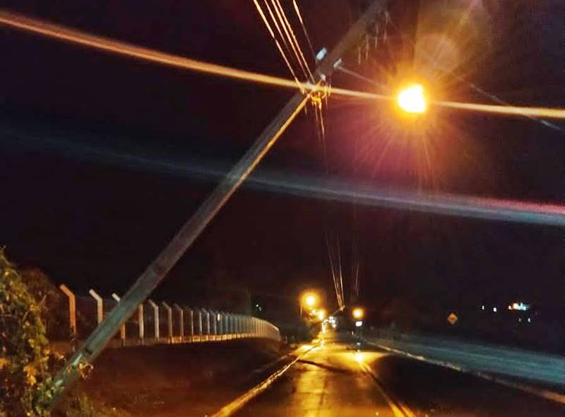 Os bombeiros foram acionados para averiguação por volta das 23h30 e confirmaram a situação de risco dos postes, com grave inclinação e cabos de baixa tensão, telefonia e internet encostando no chão.