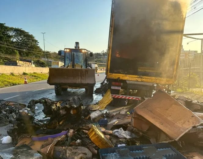 Segundo o Corpo de Bombeiros Militar, quando a guarnição chegou ao local, as chamas estavam na carga do veículo. Objetos de diversos materiais foram destruídos e a fumaça se propagou (veja imagens abaixo).