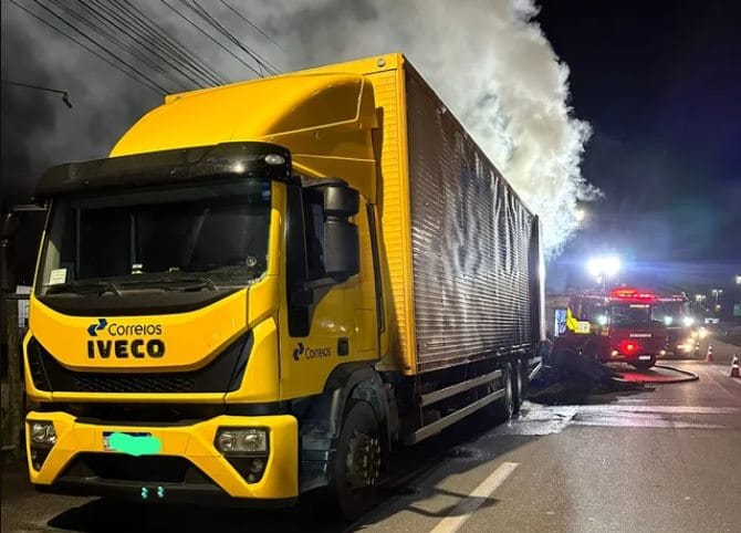 Um incêndio em um caminhão dos Correios na BR-101, em São José, na Grande Florianópolis, destruiu a carga que estava na carroceria do veículo nesta quinta-feira (31). As chamas tiveram início ainda na madrugada, no Km 280.