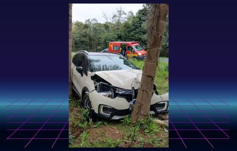 No veículo Captur estava a condutora, uma mulher de 55 anos, que acabou saindo de pista e colidindo em uma palmeira às margens da rodovia.