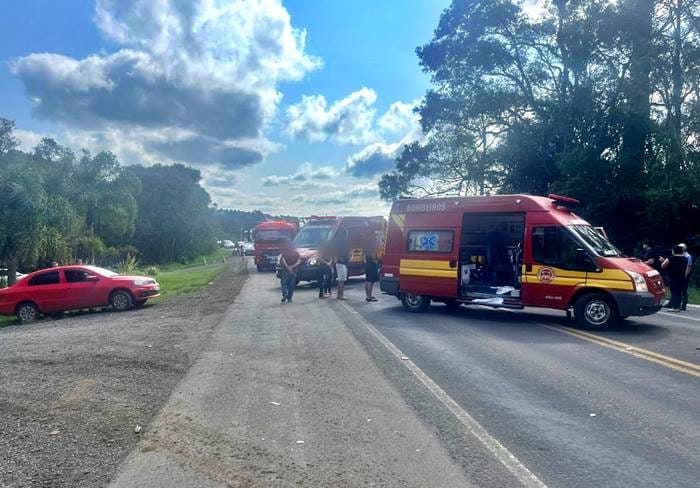 Após realizados os procedimentos de APH, devido a gravidade das lesões, a vítima foi conduzida em maca rígida para a Unidade de Pronto Atendimento de Canoinhas.