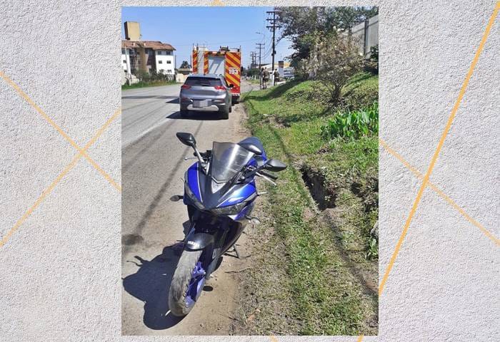 De acordo com o Corpo de Bombeiros, a motocicleta Yamaha, placa de Canoinhas, era conduzida por um homem de 36 anos. Ele foi encontrado, sentado, ainda em cima da motocicleta, consciente, já sem o capacete, e referia fortes dores na perna direita.