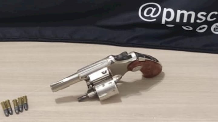 Foi realizada a abordagem e ao iniciar revista e busca pessoal no adolescente foi encontrado, no bolso de sua blusa de moletom, um revólver marca Rossi, com 5 munições no tambor. Os adolescentes foram conduzidos para a Delegacia.