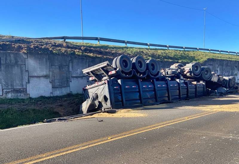 O motorista conduzia uma carreta com placas de Tijucas, na Grande Florianópolis, carregada com soja.