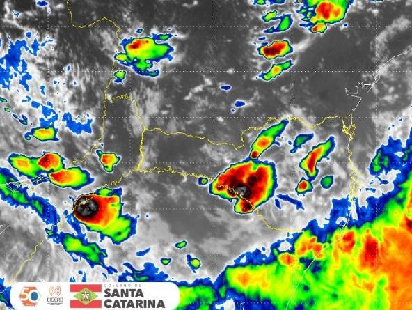 A tarde deste domingo (03) registrou temporais isolados em Santa Catarina, provenientes da combinação do fluxo de calor e umidade vindos da região norte do país e de instabilidades associadas a um sistema de baixa pressão.