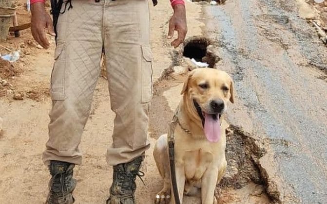 Thayron, um dos cachorros que ajudavam no resgate de vítimas após a destruição causada pela passagem do ciclone extratropical no Rio Grande do Sul, morreu na manhã desta sexta-feira (22).