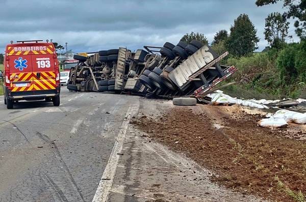 Outro caminhão que trafegava na rodovia tombou na pista após tentar desviar do local do acidente. Ele não se machucou.