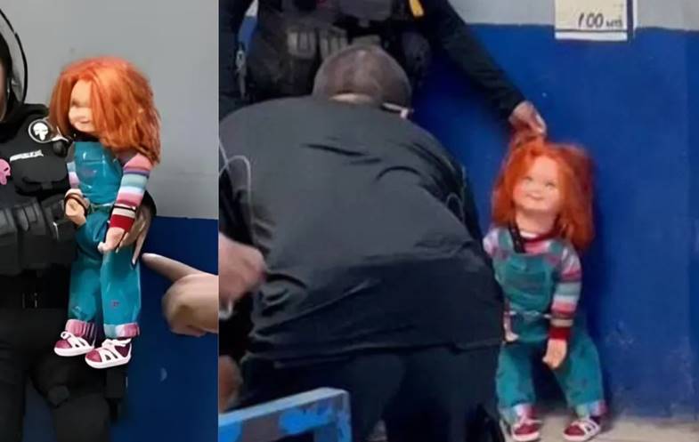 O boneco Chucky, figura clássica do cinema de terror, dessa vez foi preso na vida real, no México. Segundo o site de notícias locais “Fuerza Informativa Azteca”, a polícia da cidade de Monclova, no estado de Coahuila, prendeu um homem que pedia dinheiro e assustava as pessoas usando um boneco Chucky, que tinha como acessório uma faca de verdade no bolso do macacão.
