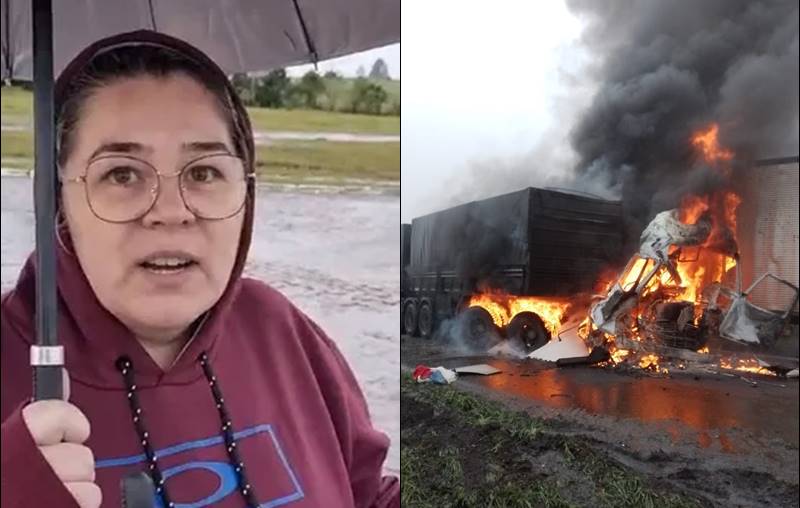 “Parece cena de filme. Graças a Deus estou bem, mas não deu pra fazer nada. Tinha muita neblina, quando fui ver a fila estava parada, foi batendo um caminhão atrás do outro. Pisei no freio, mas não segurou. O meu caminhão pegou fogo na hora da batida. Muita gente correu com extintor para ajudar a apagar as chamas, mas não deram conta”, explicou.