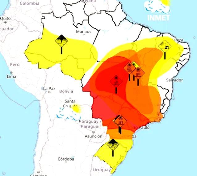 Os comunicados do Inmet ocorrem quando o Centro-Sul do país vive uma onda de calor atípica.