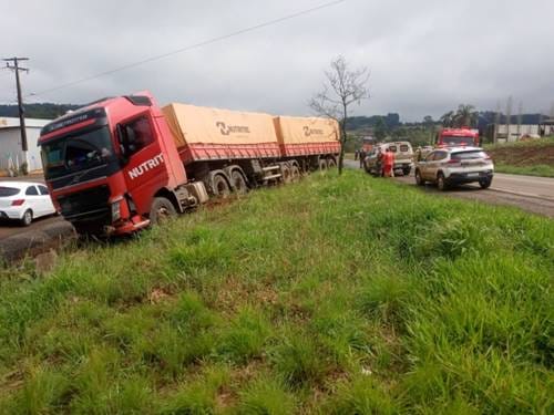 O motorista de um caminhão, com placas de Lajeado (RS), com carga de grãos, não se feriu.