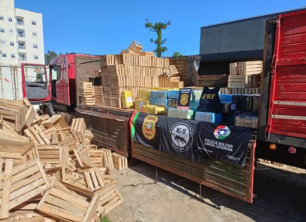 A substância ilícita estava sendo transportada na carreta de um caminhão que trafegava pela BR-280 em Canoinhas, e estava ocultada em meio a centenas de caixas de madeira.