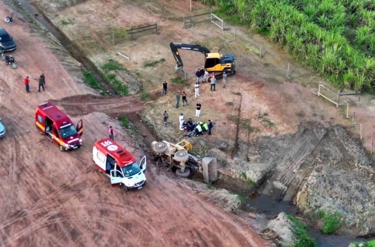 O homem, identificado como Antônio João Alexandre, 53 anos, foi encontrado inconsciente, prensado sob o equipamento, em estado grave.