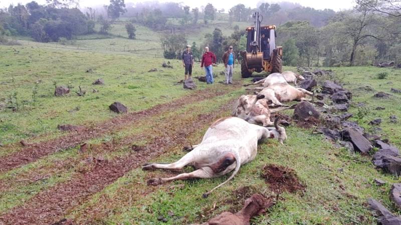 Cinco vacas e um bezerro morreram durante a passagem de um ciclone extratropical por Santa Catarina. O caso ocorreu na região chamada de Linha Taquarinha, em Planalto Alegre, a 30 quilômetros de Chapecó, no Oeste de SC.