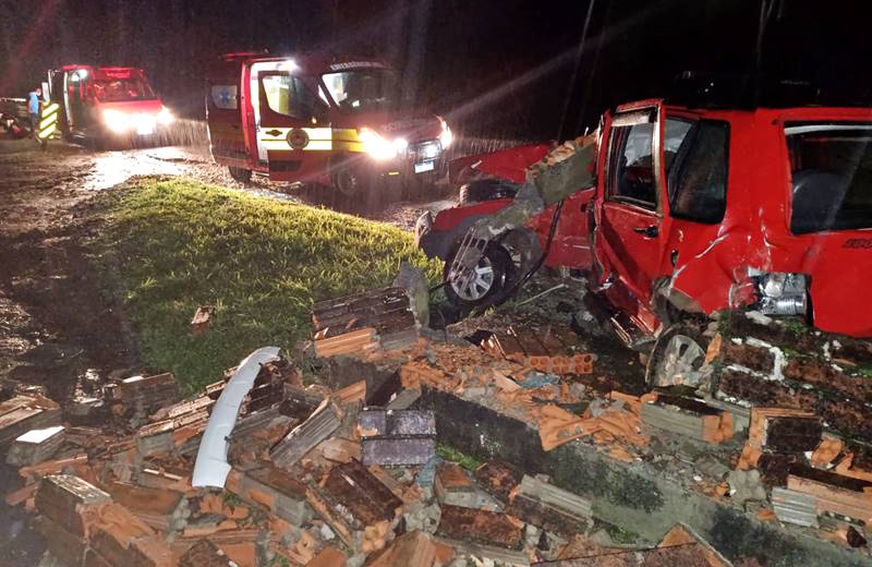 No local foi encontrado um Fiat Uno em meio os escombros, com dois ocupantes.