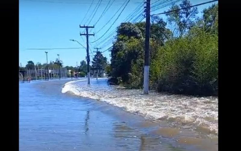 O Rio Canoinhas, que marcava 7,60 metros na quarta-feira (1º), está com 8,31 metros de cheia às 17h deste domingo (5).