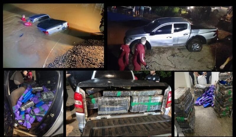 Os mergulhadores dos Bombeiros Voluntários de Concórdia, com auxílio de uma máquina da prefeitura Caxambu do Sul, retiraram o veículo da água. Após a remoção, foi constatado que a caminhonete estava carregando aproximadamente 776 kg de maconha. Os tabletes da droga estavam acondicionados nos bancos traseiros e também na caçamba do veículo.