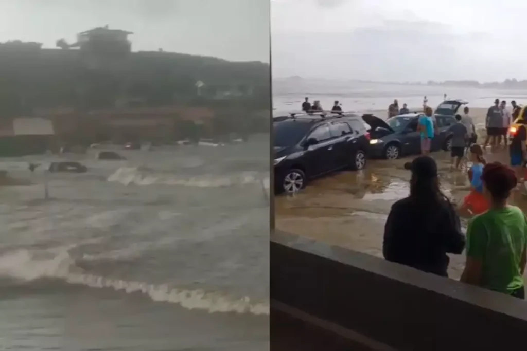 Um tsunami meteorológico arrastou carros e assustou frequentadores da praia do Cardoso em Laguna, Litoral Sul de Santa Catarina, na tarde deste sábado (11). Segundo a Defesa Civil, que confirmou a ocorrência, o fenômeno é incomum e “de difícil previsão”.