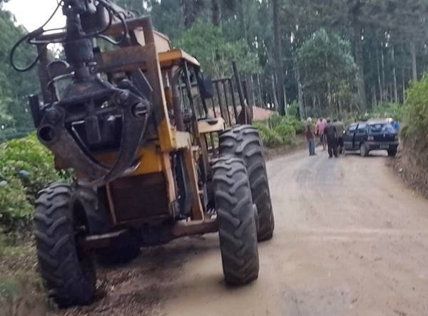 No local, as equipes encontraram um automóvel Fiat Uno, com placas de Itaiópolis, colidido com um trator florestal marca Valmet (veja imagens abaixo).