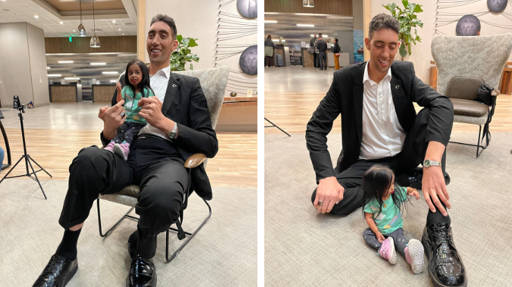 O encontro histórico ocorreu durante um evento realizado pelo Guinness Book na California, Estados Unidos. O momento rendeu muitos cliques curiosos dos dois, principalmente pela grande diferença no tamanho. Sultan Kosen possui 2,51 metros, enquanto Jyoti Amge possui 68,2 centímetros.
